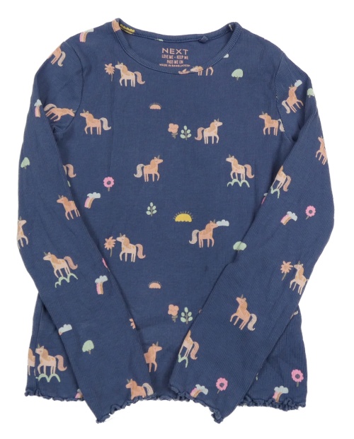 Tmavomodré rebrované tričko s jednorožcami Next