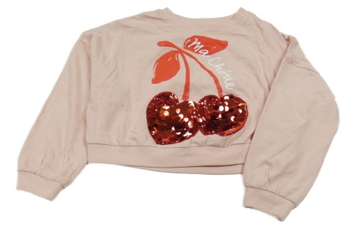 Svetloružové crop tričko s třešněmi z flitrů Next
