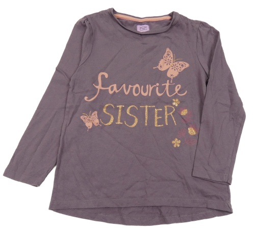 Fialové tričko s nápismi a motýlom F&F