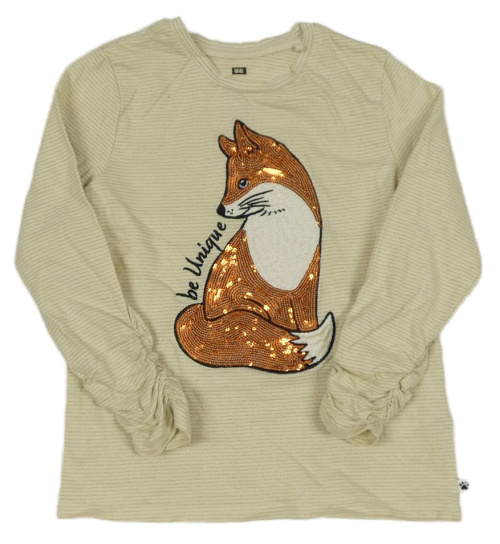 Smetanovo-zlaté pruhované trblietavé tričko s líškou WE