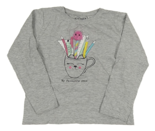 Sivé melírované tričko s psacími potřebami a hrnkem Blue Seven