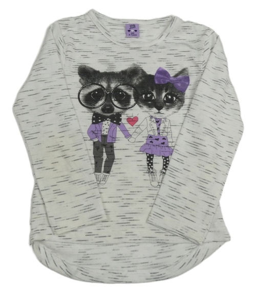 Biele žíhané pletené tričko s mývalem a mačkou Kiki&Koko