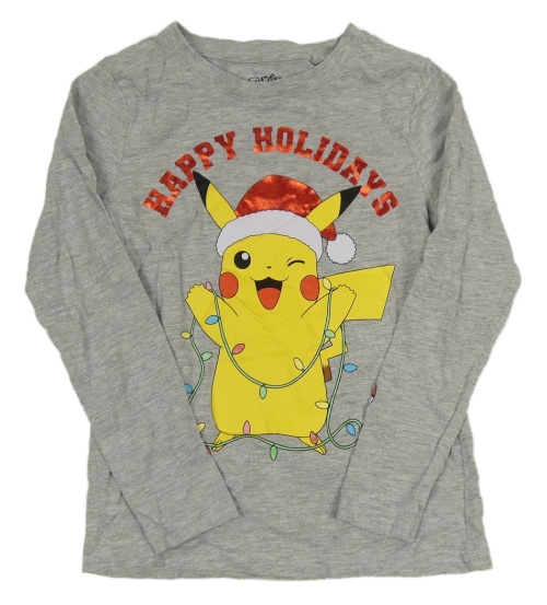 Sivé melírované tričko s Pikachu s vánočním motívom C&A