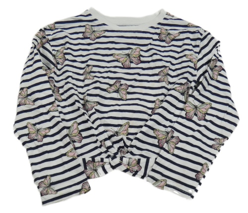 Čierno-biele pruhované crop tričko s motýlikmi Manor
