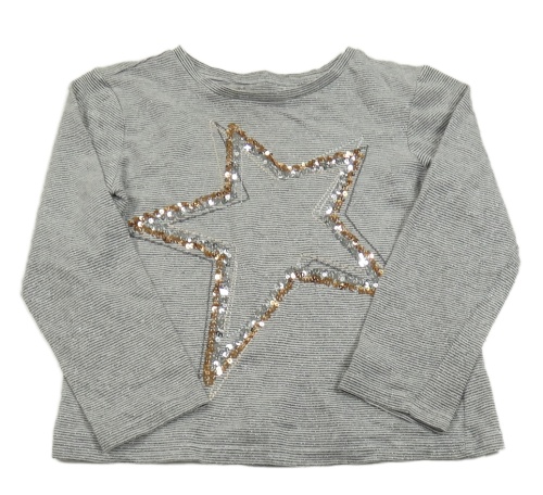 Čierno-svetlošedá -strieborné pruhované melírované tričko s hvězdou z flitrů PRIMARK