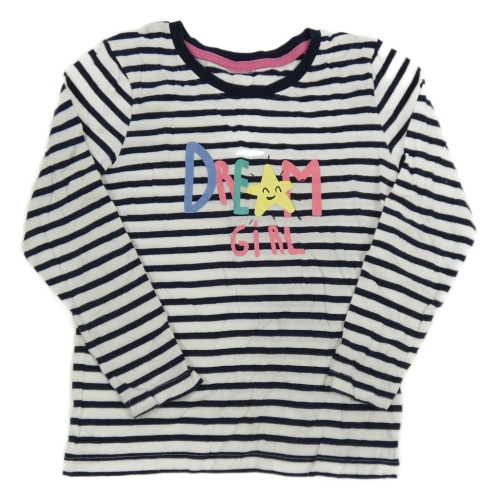 Bielo-tmavomodré pruhované tričko s nápisom