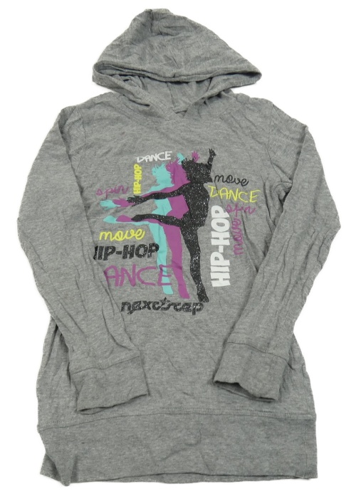 Sivá melírovaná tunika s tanečnicí a nápismi a kapucňou Next