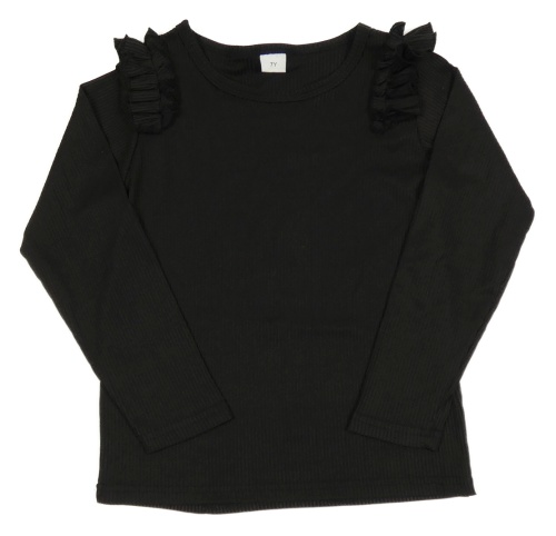 Čierne rebrované tričko s volánikmi