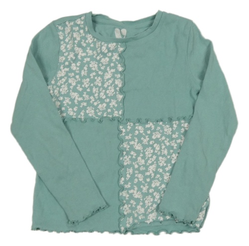 Mentolové rebrované tričko s kvietkami V BY VERY