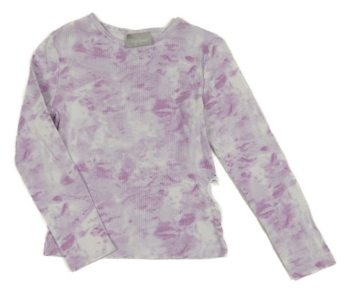 Lila-biele batikované rebrované crop tričko s prestrihmi Matalan