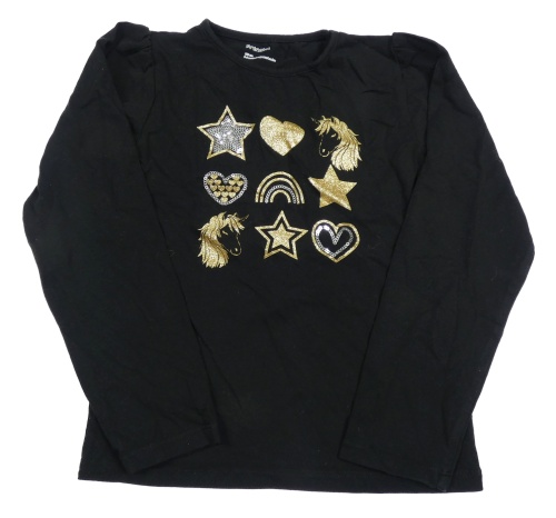 Čierne tričko so zlatými jednorožci a srdiečkami a hviezdičkami a flitrami Prénatal