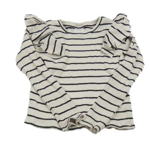 Smetanovo-čierne pruhované rebrované tričko s volánikmi Zara