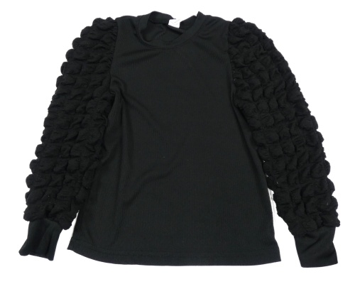 Čierne rebrované tričko s nařasenými rukávy Shein