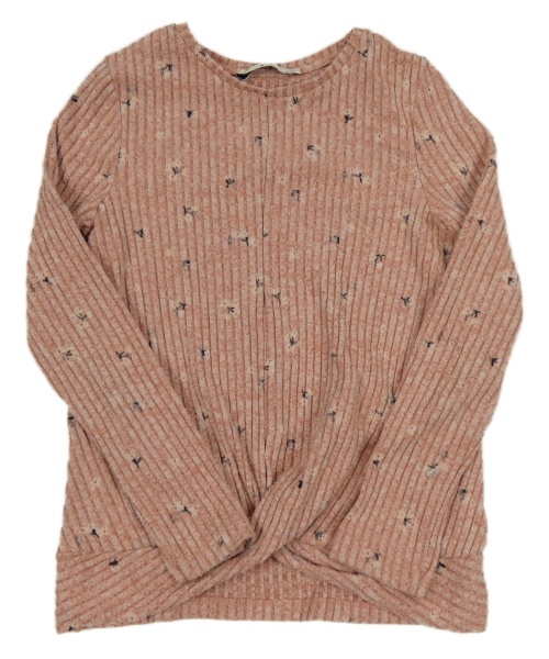 Staroružové melírované rebrované kvetované úpletové tričko C&A