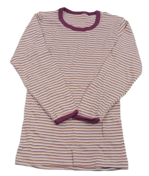 Vínovo-oranžovo-svetlomodré pruhované dlhé tričko
