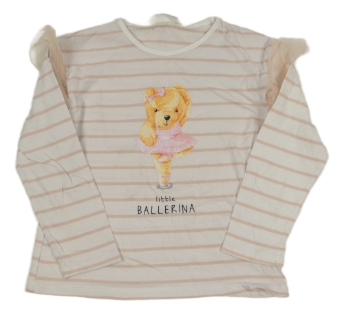 Svetloružové pruhované tričko s medvedíkom a volánikmi LC Waikiki