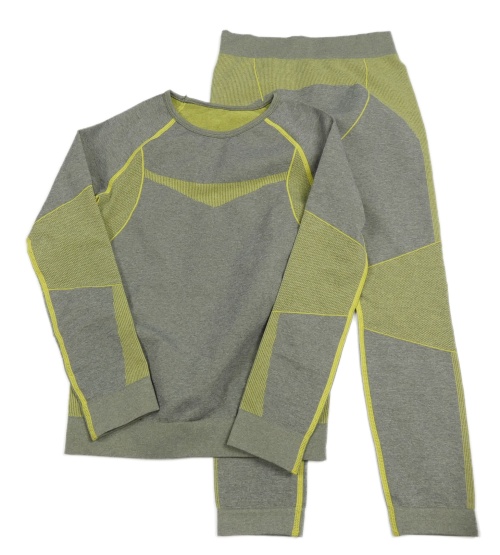 2Set - Sivo-žlté melírované funkčné spodné tričko s pruhmi a vzorem + nohavice lupilu