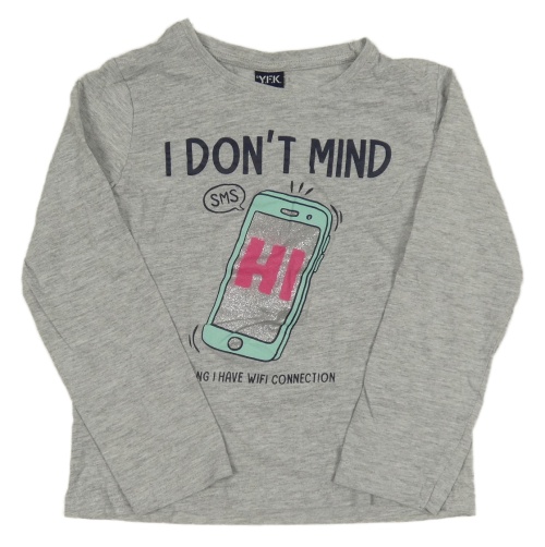 Sivé tričko s nápisom a mobilem Y.F.K.