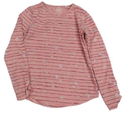 Ružovo-vínové pruhované melírované tričko so trblietavymi kvety Topolino
