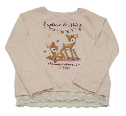 Svetloružové úpletové tričko so srnkami a čipkou Dopodopo