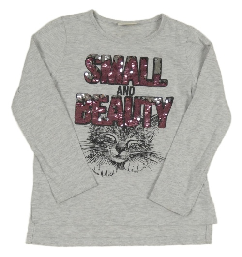 Svetlosivé melírované tričko s mačkou a nápisem z překlápěcích flitrů LC Waikiki