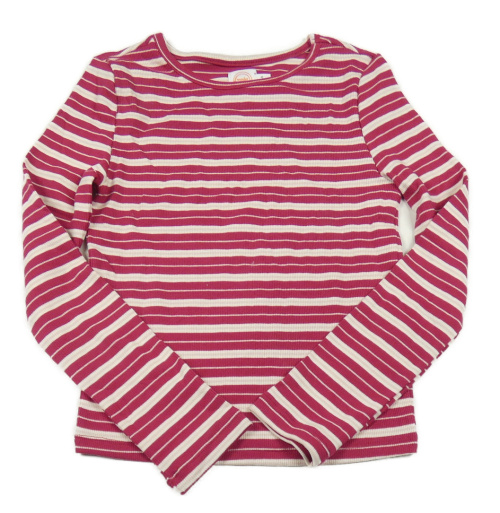Fuchisovo-bielo-ružové pruhované rebrované crop tričko