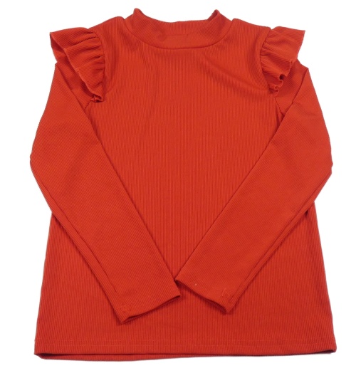 Červené rebrované tričko s volánikmi