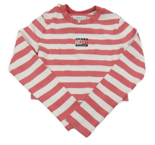 Ružovo-biele pruhované rebrované crop tričko Tommy Hilfiger