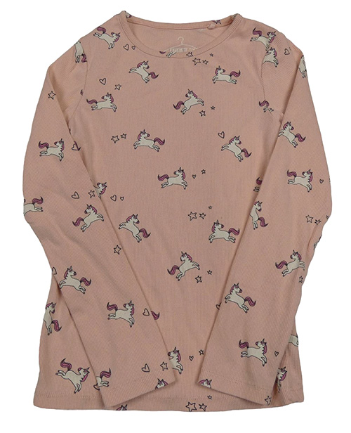 Ružové rebrované tričko s jednorožcami Next