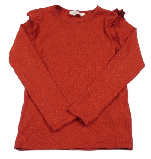 Červené rebrované trblietavé tričko s volánikmi H&M