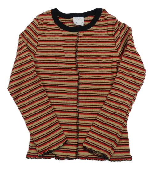 Hnedo-červeno-čierne pruhované rebrované tričko Zara