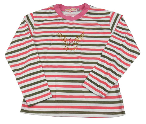 Tmavorůžovo-kaki-biele pruhované tričko s kamienkami