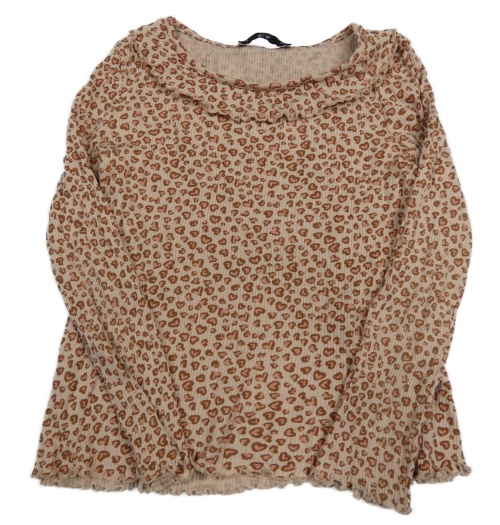 Ružovo-hnedé rebrované tričko so srdiečkami a volánikom C&A
