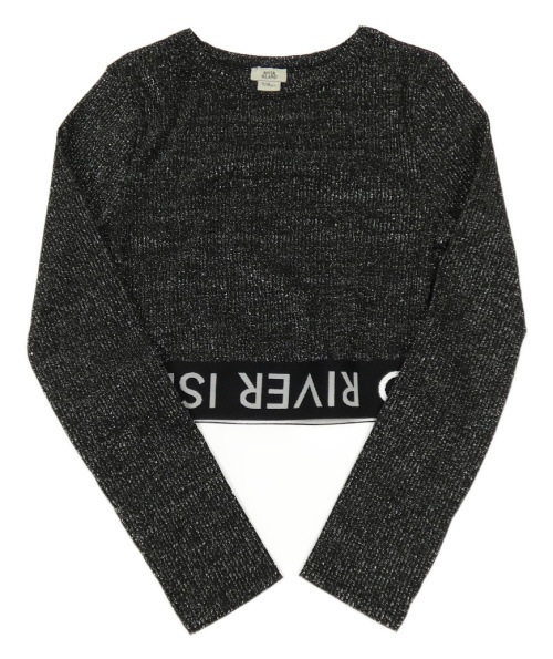 Čierno-strieborné crop tričko s nápisom River Island