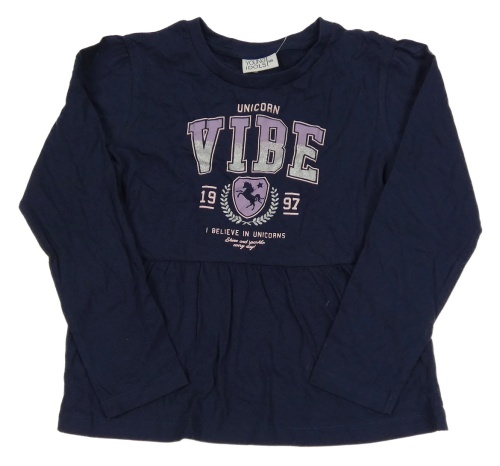 Tmavomodrá tunika s nápismi a číslom a jednorožcom YOUNG IDOLS