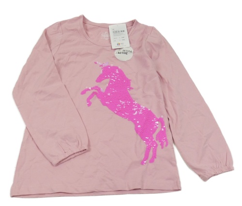 Nové - Svetloružové tričko s jednorožcem z flitrů Topolino