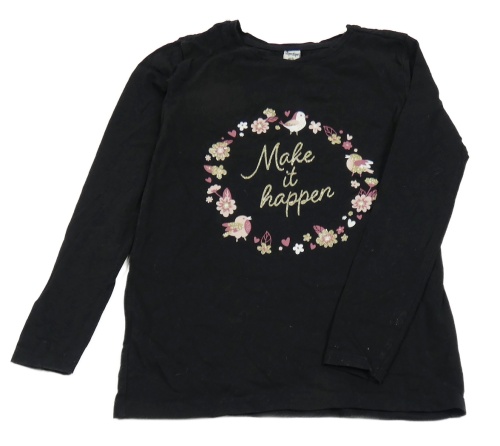 Čierne tričko s vtáčky a kvetmi Dopodopo