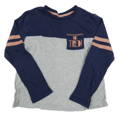 Sivo-tmavomodré melírované tričko s vreckom s nápismi a pruhmi George