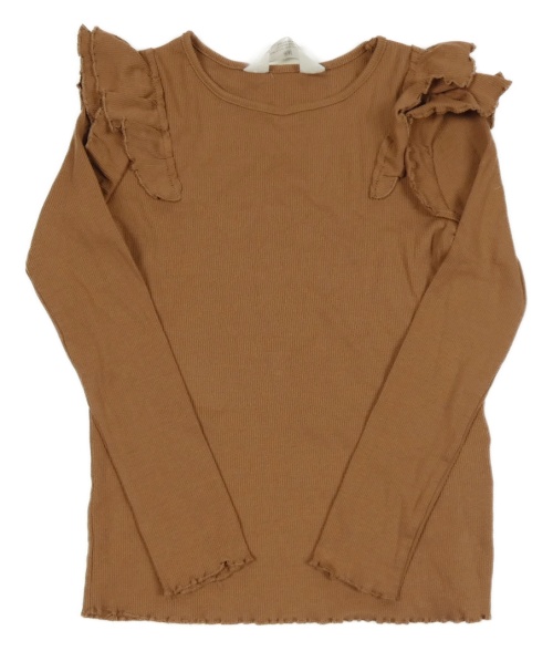 Hnedé rebrované tričko s volánikmi H&M