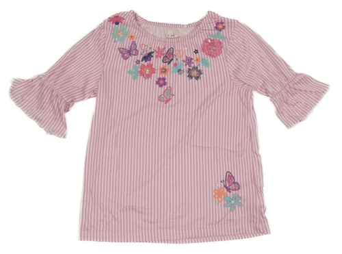 Ružovo-biele pruhované tričko s kvetinami a motýly Topolino