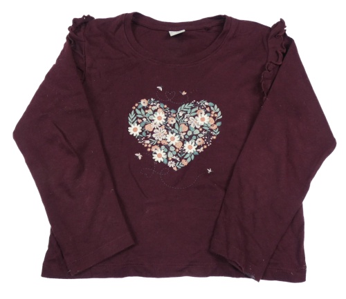 Vínové tričko so srdcem z květin a volánikmi