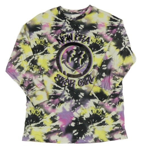 Čierno-fialovo-žlté batikované tričko s nápismi a smajlíkom Next