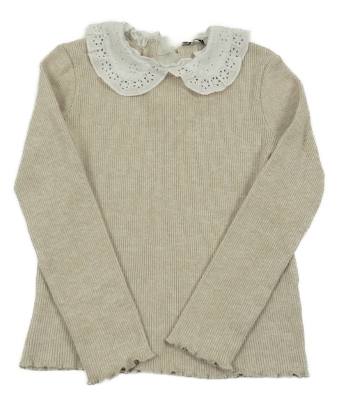 Béžové úpletové rebrované tričko s madeirou C&A