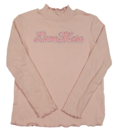 Svetloružové rebrované tričko s nápisom a kamienkami George