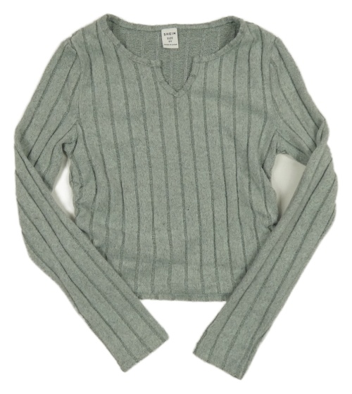 Zelenošedé úpletové crop tričko Shein