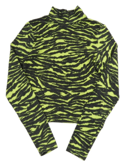 Tmavošedo-neónově zelené vzorované úpletové tričko so stojačikom
