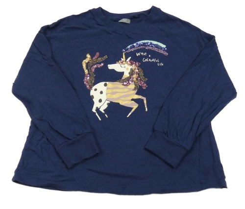 Tmavomodré tričko s jednorožcom a flitrami Next