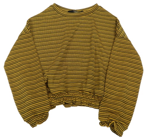 Hořčicovo-čierne pruhované úpletové crop tričko