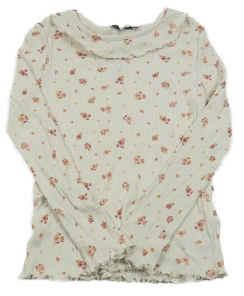 Svetlobéžové kvetované rebrované tričko s golierikom C&A