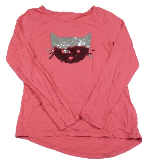 Ružové tričko s kočkou z překlápěcích flitrů